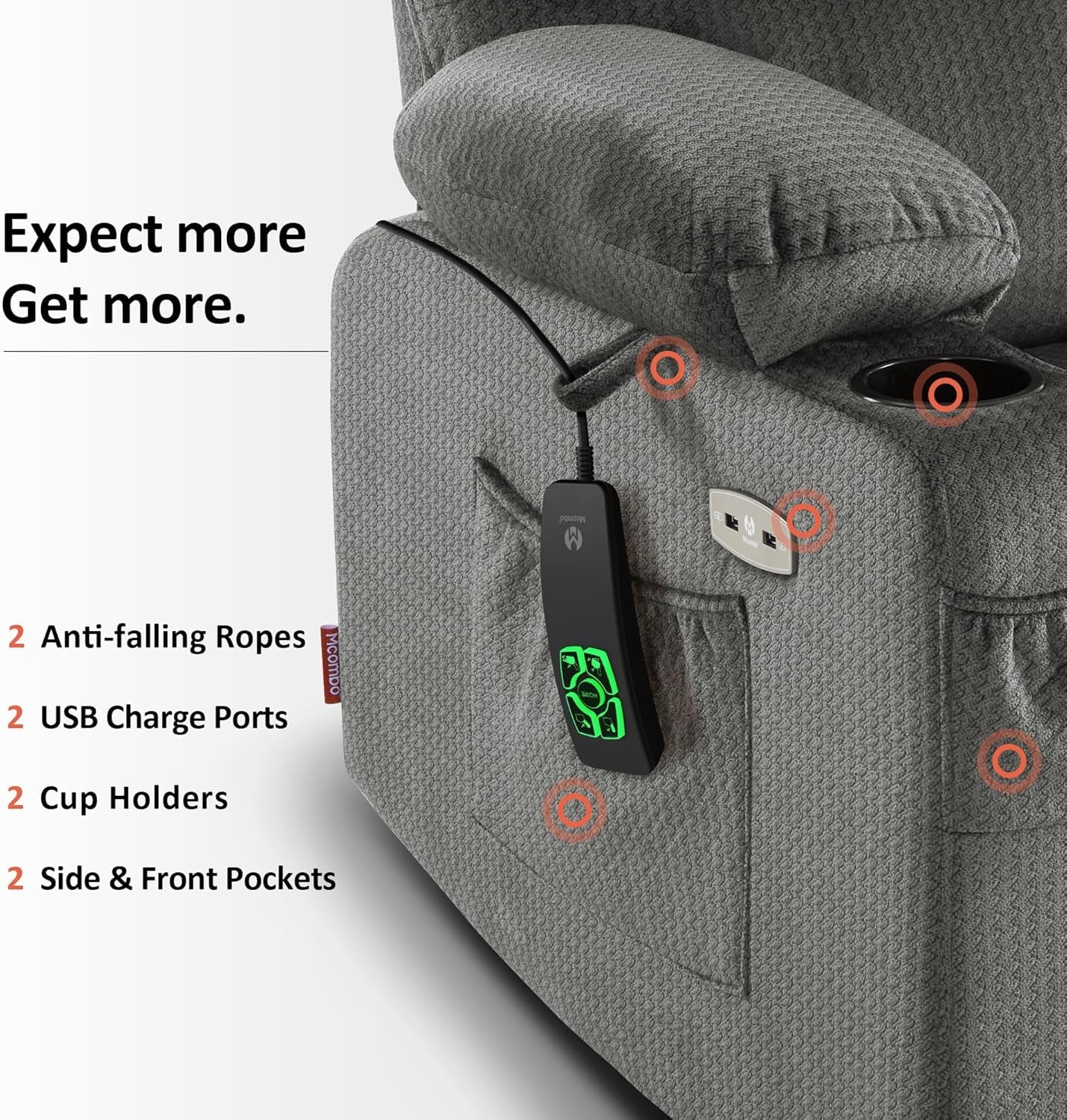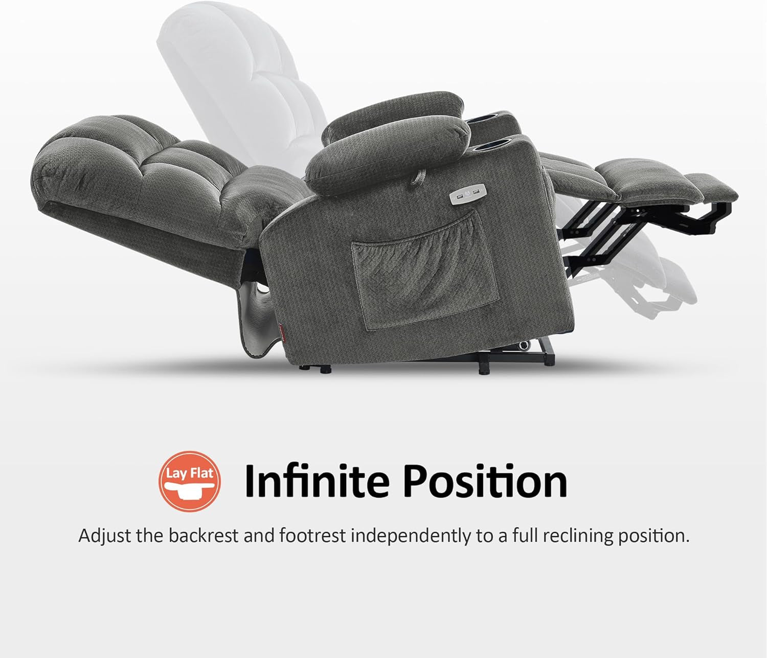 - Infinite Position Adjustment: Enjoy the flexibility of adjusting the backrest and footrest independently to find your perfect position, including lift, TV, and lay-flat options (Max reclining angle: 165°).
