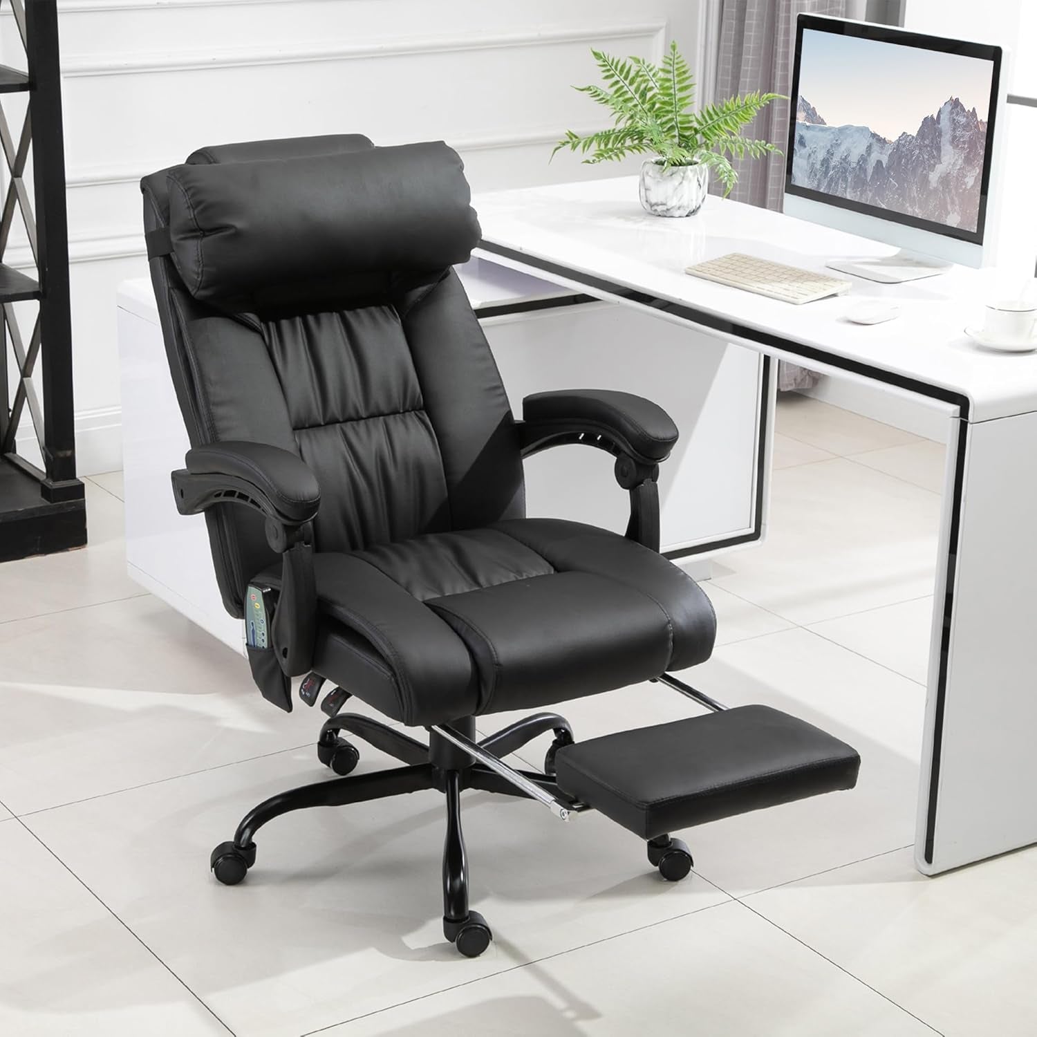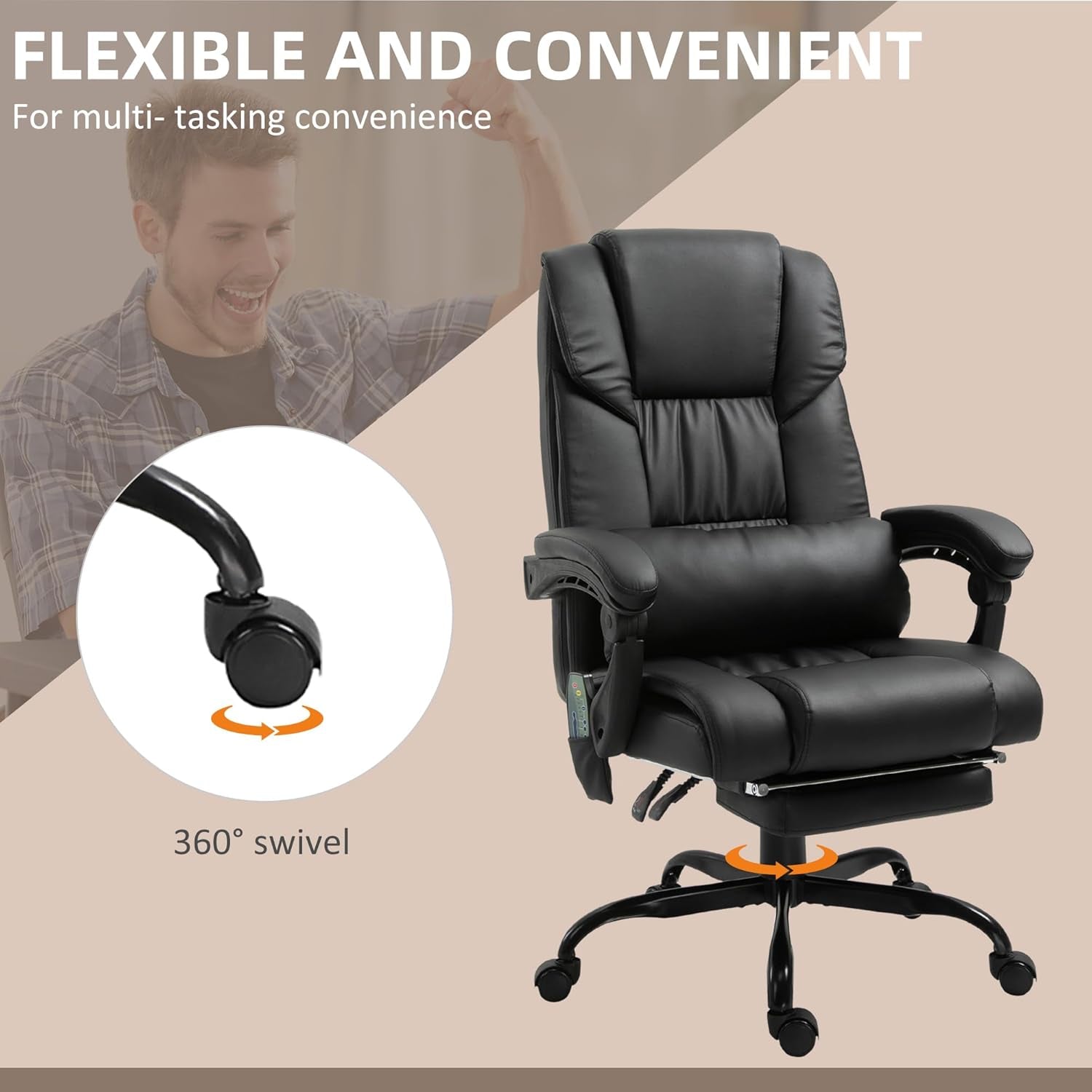 High Back Massage Office Chair with 6 Vibration Points, PU Leather