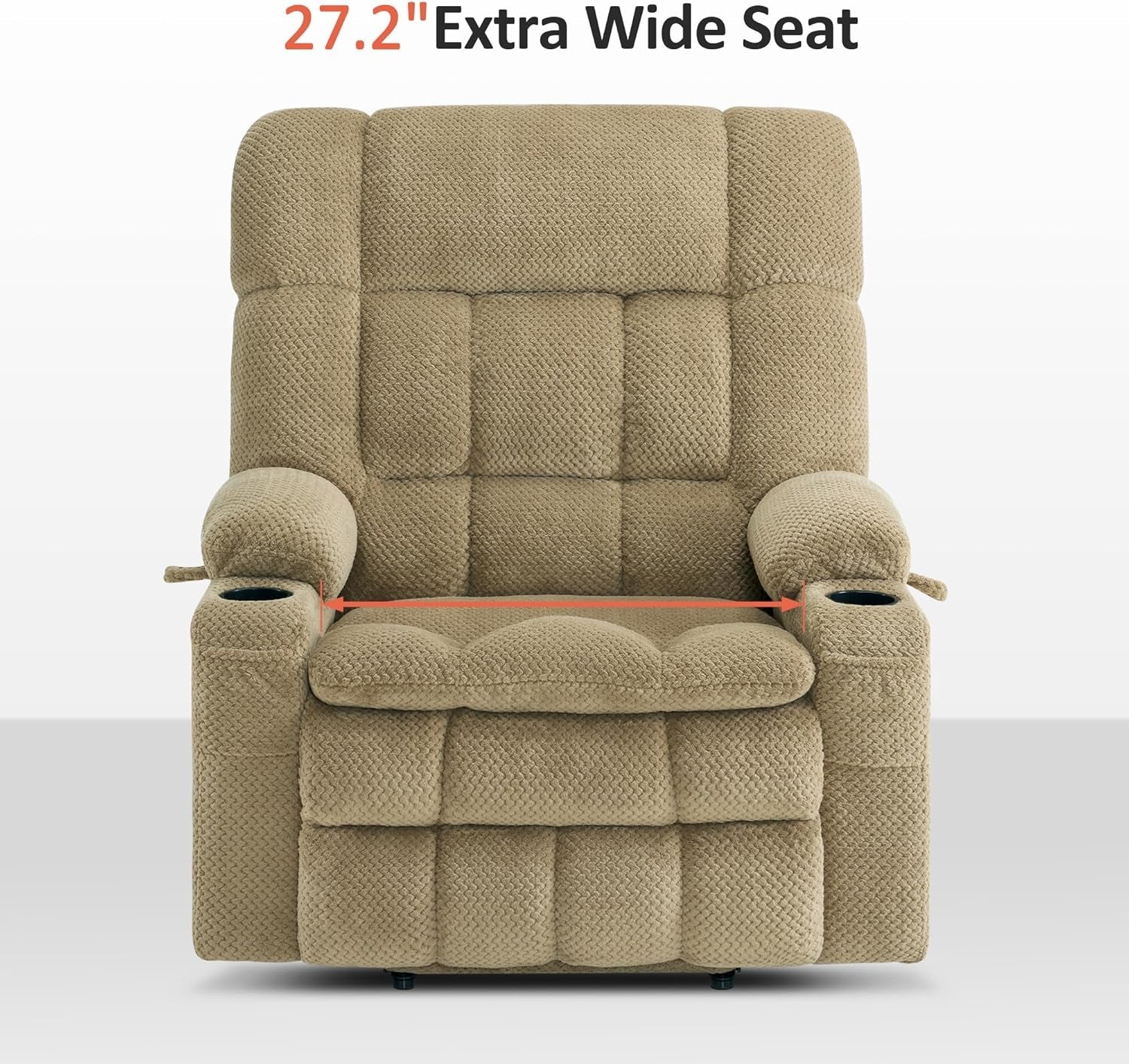 - Extra Wide Seat: With a generous 27.2" seat width, this recliner offers ample space, perfect for larger individuals or those who prefer more room.