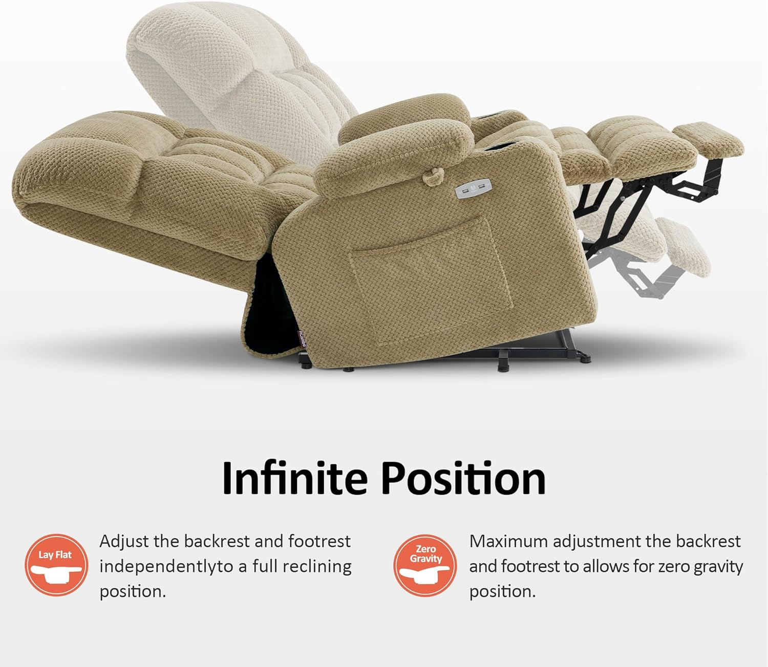 - Dual Motor Control: Enjoy independent adjustments of the backrest and footrest for personalized positioning, allowing you to recline up to 165°.