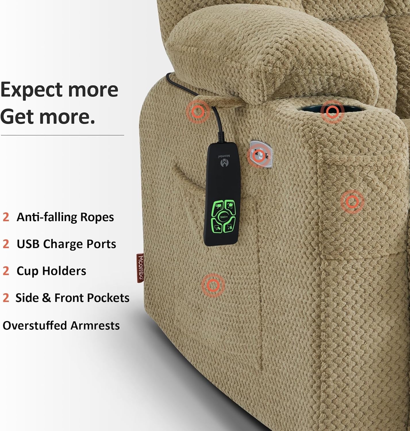 - Generous Warranty: Enjoy peace of mind with a 2-year limited warranty covering the reclining mechanism, electrical parts, upholstery, and frame.
