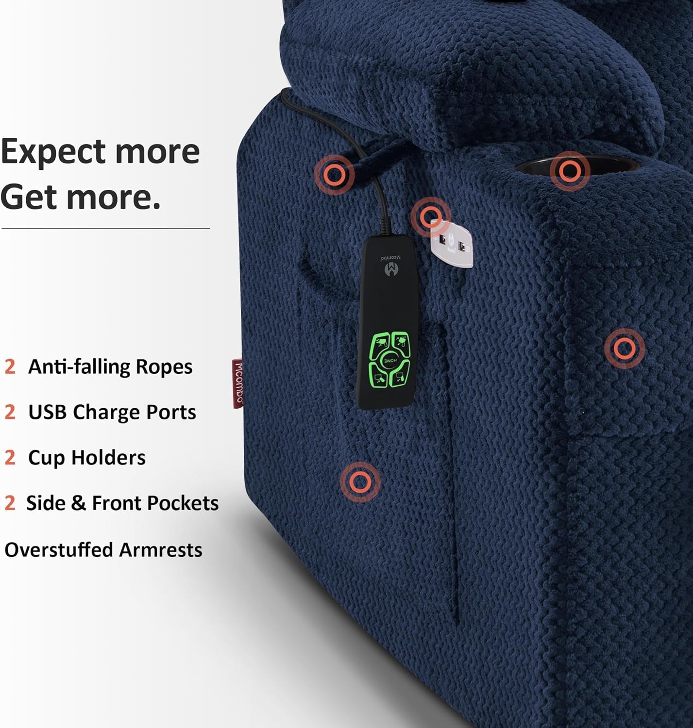 - Convenient USB Charging & Cup Holders: Stay connected and refreshed with dual USB charging ports and built-in cup holders, perfect for enjoying your favorite drinks and devices while relaxing.