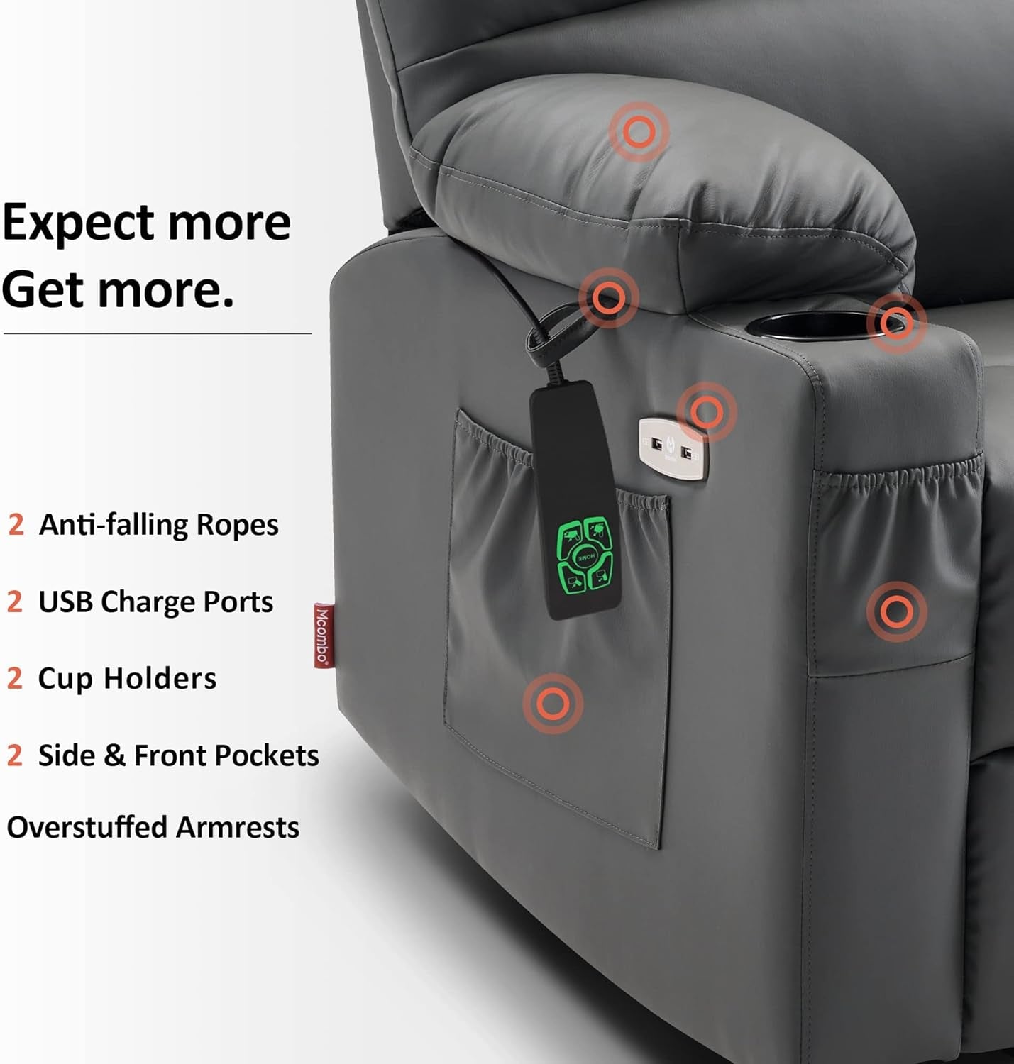 Transform your relaxation routine with the Ultimate Dual Motor Recliner with Massage and Heat. Experience the perfect blend of style, comfort, and functionality designed to meet all your lounging needs.