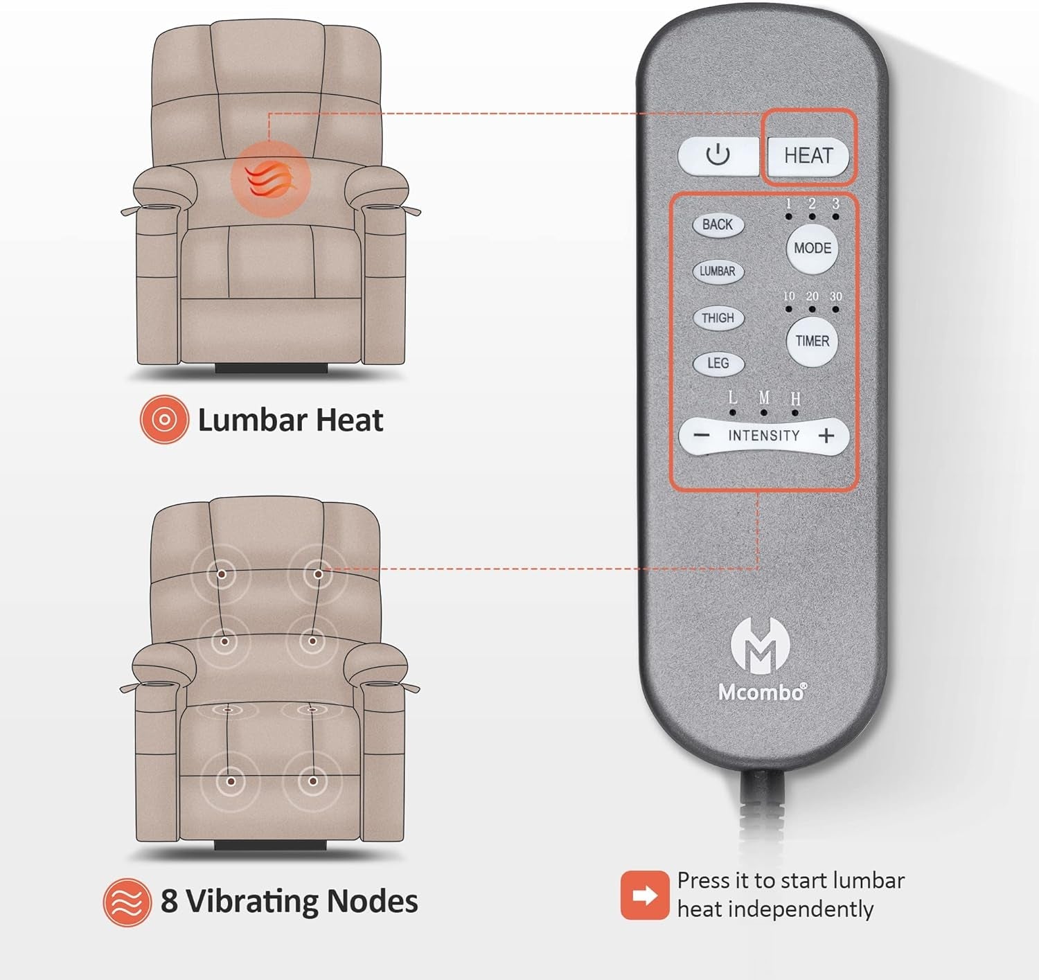 - Soothing Vibration & Heat: Enjoy full-body vibration with 8 massage points and a separate lumbar heating function, adjustable for 10, 20, or 30 minutes.