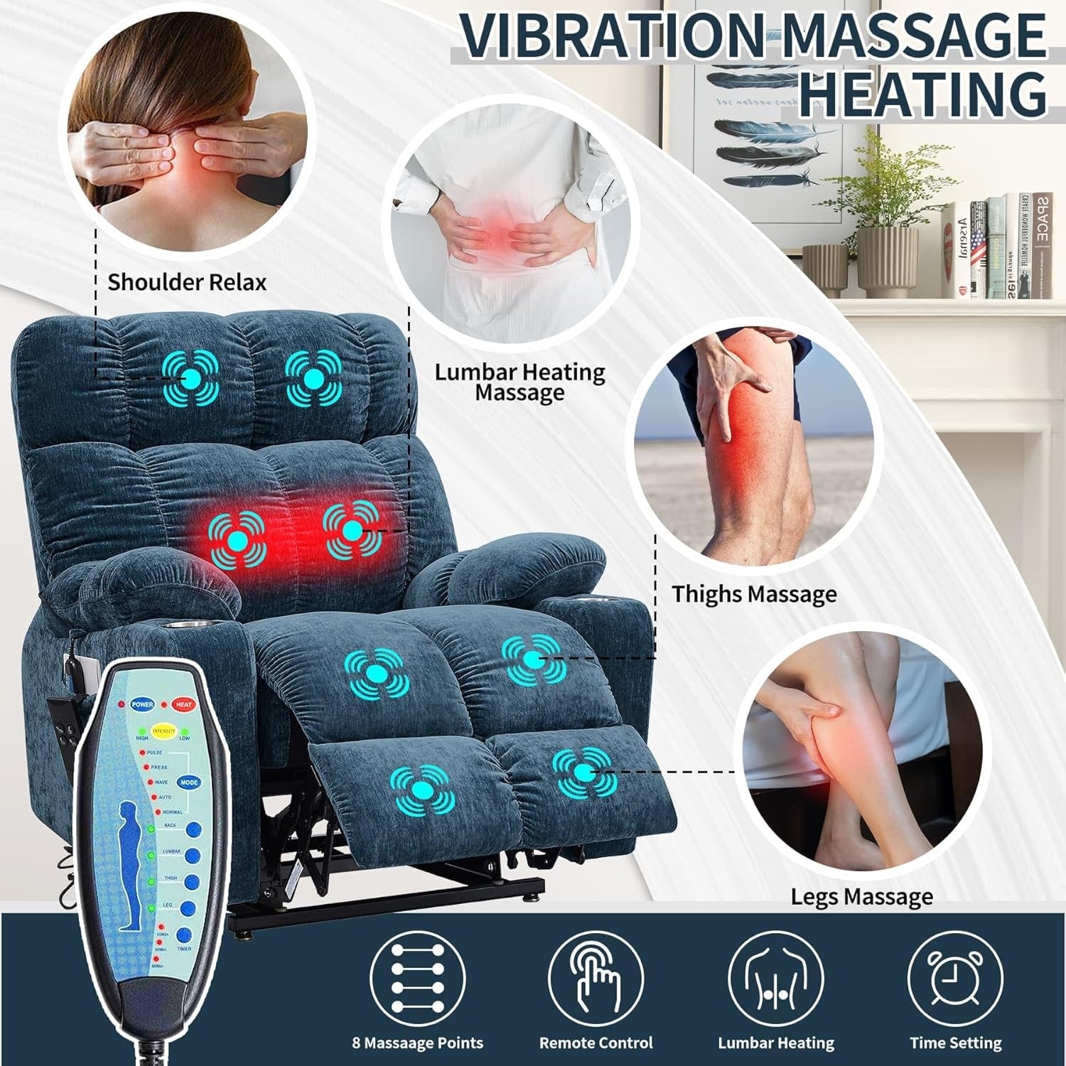 - 8-Point Vibration Massage & Lumbar Heating: Enjoy a relaxing massage with 8 vibrating points and targeted lumbar heat, perfect for watching TV or reading.
