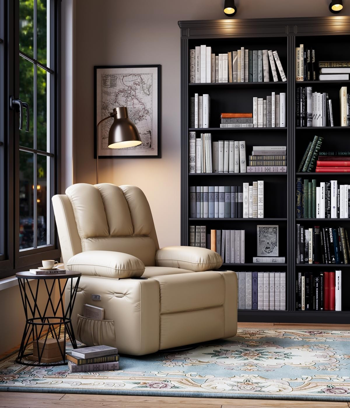 Oversized 27" Recliner Chairs with Heat and Massage - 360° Swivel Lazy