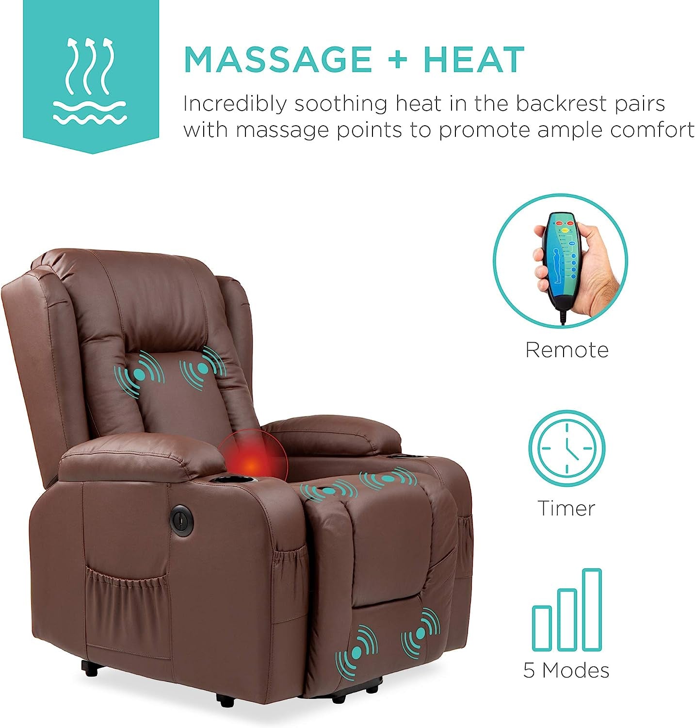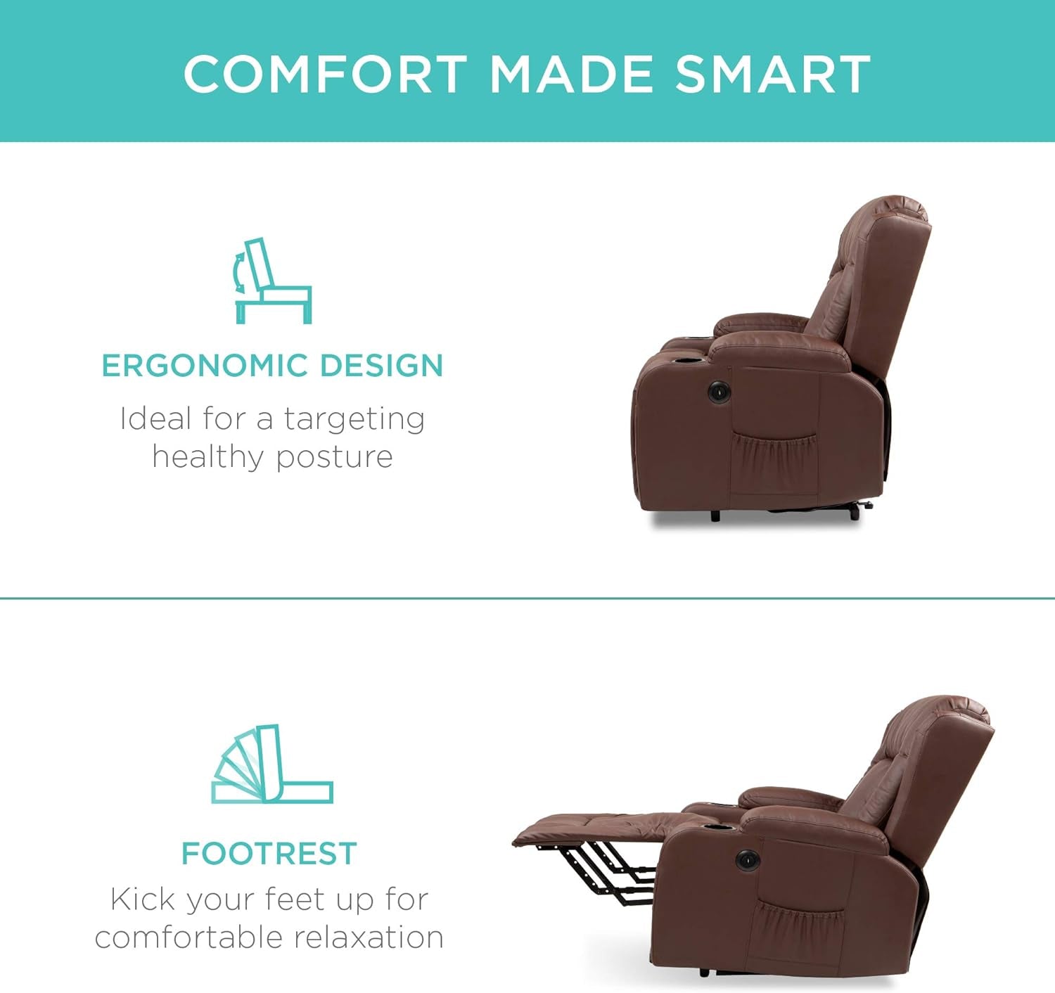 Power Lift Recliner Massage Chair with USB, Heat, and Cupholders