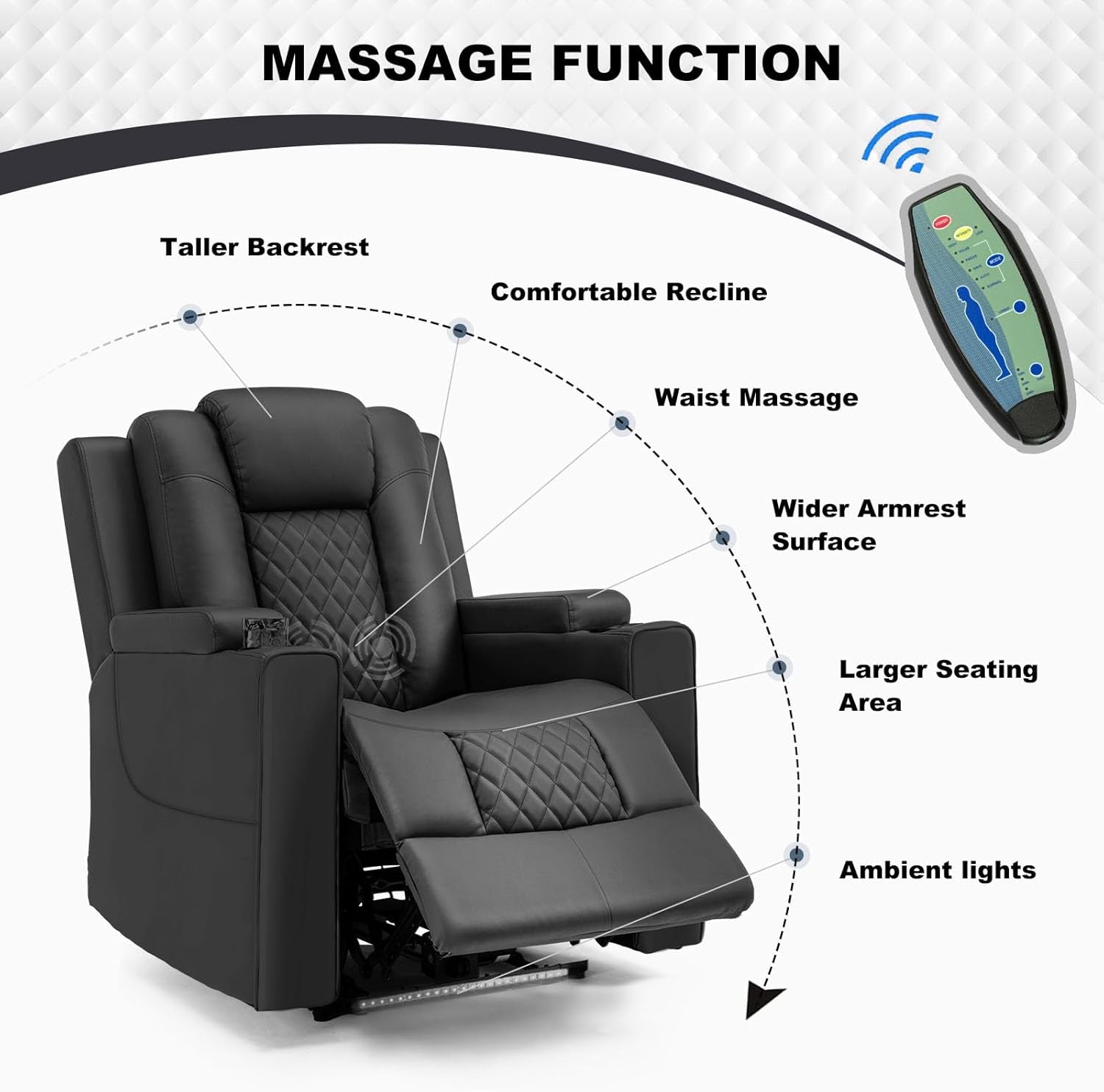 - Adjustable Reclining & Massage: Effortlessly recline from 90 to 165 degrees with the remote control, enjoying 5 massage modes targeting your lower back.