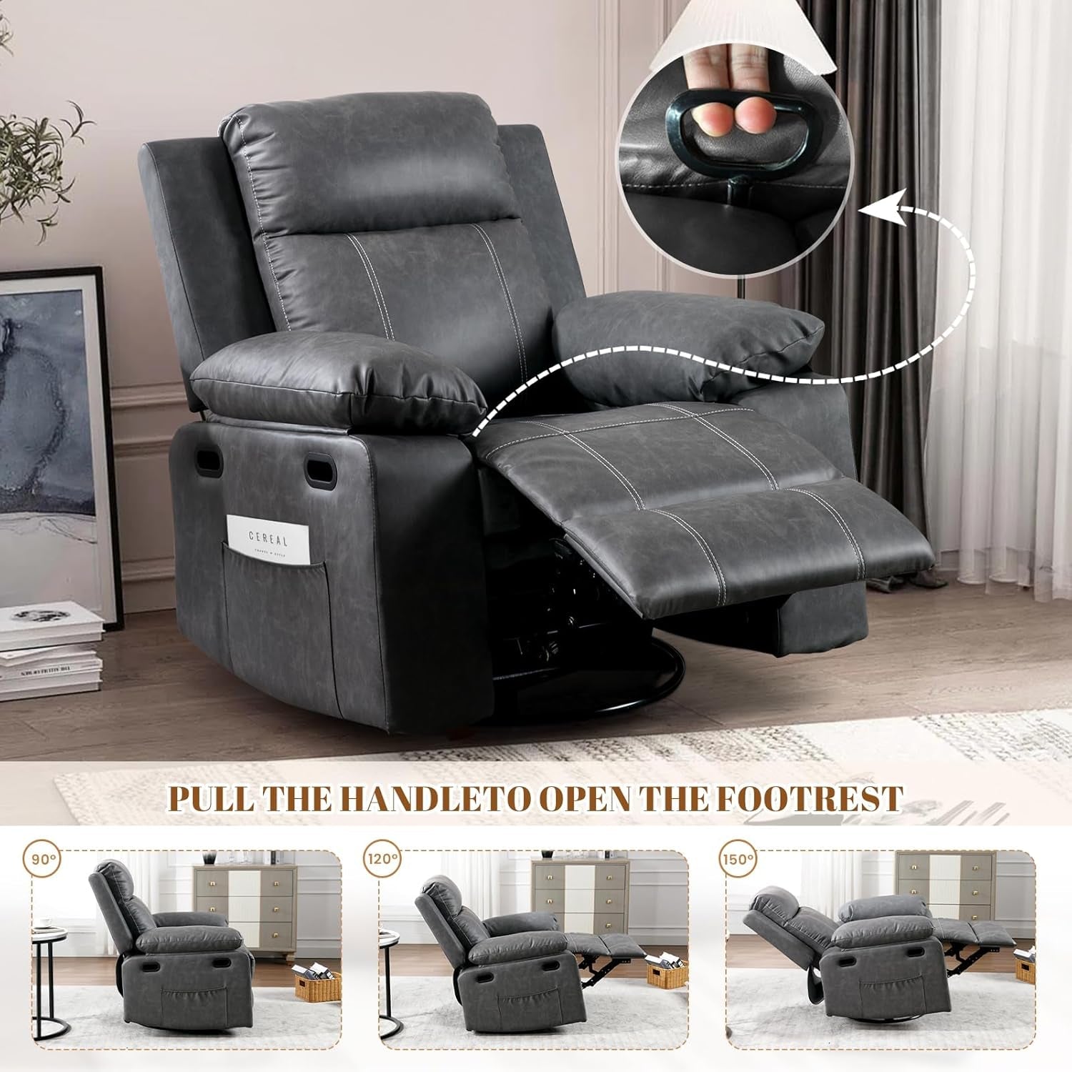 Recliner Chair, 360 Degree Swivel Rocking Chair with Massage and Heat,