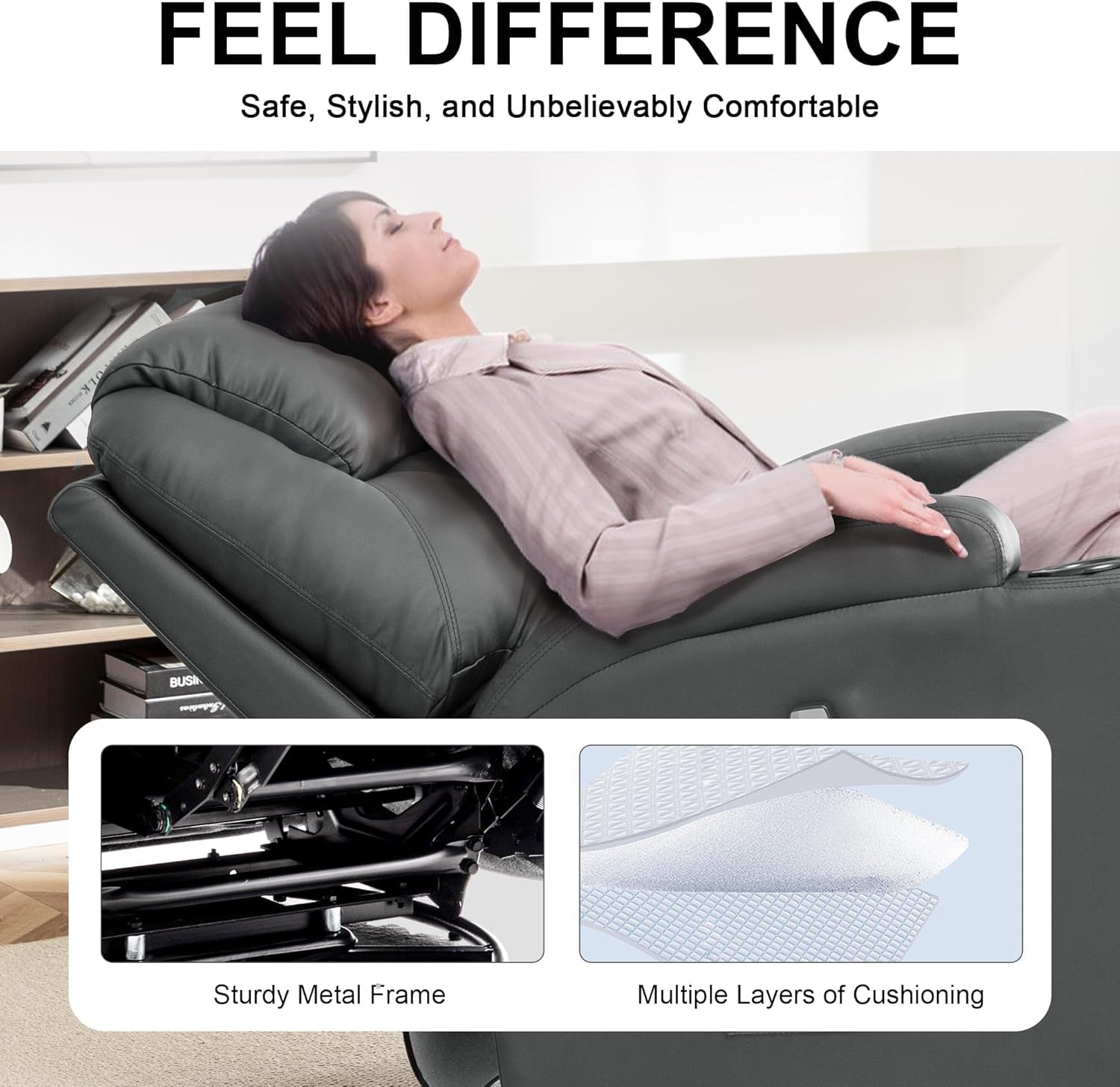 - Premium Material: Made from durable faux leather, this recliner is easy to clean and water-resistant, ensuring lasting quality and comfort.