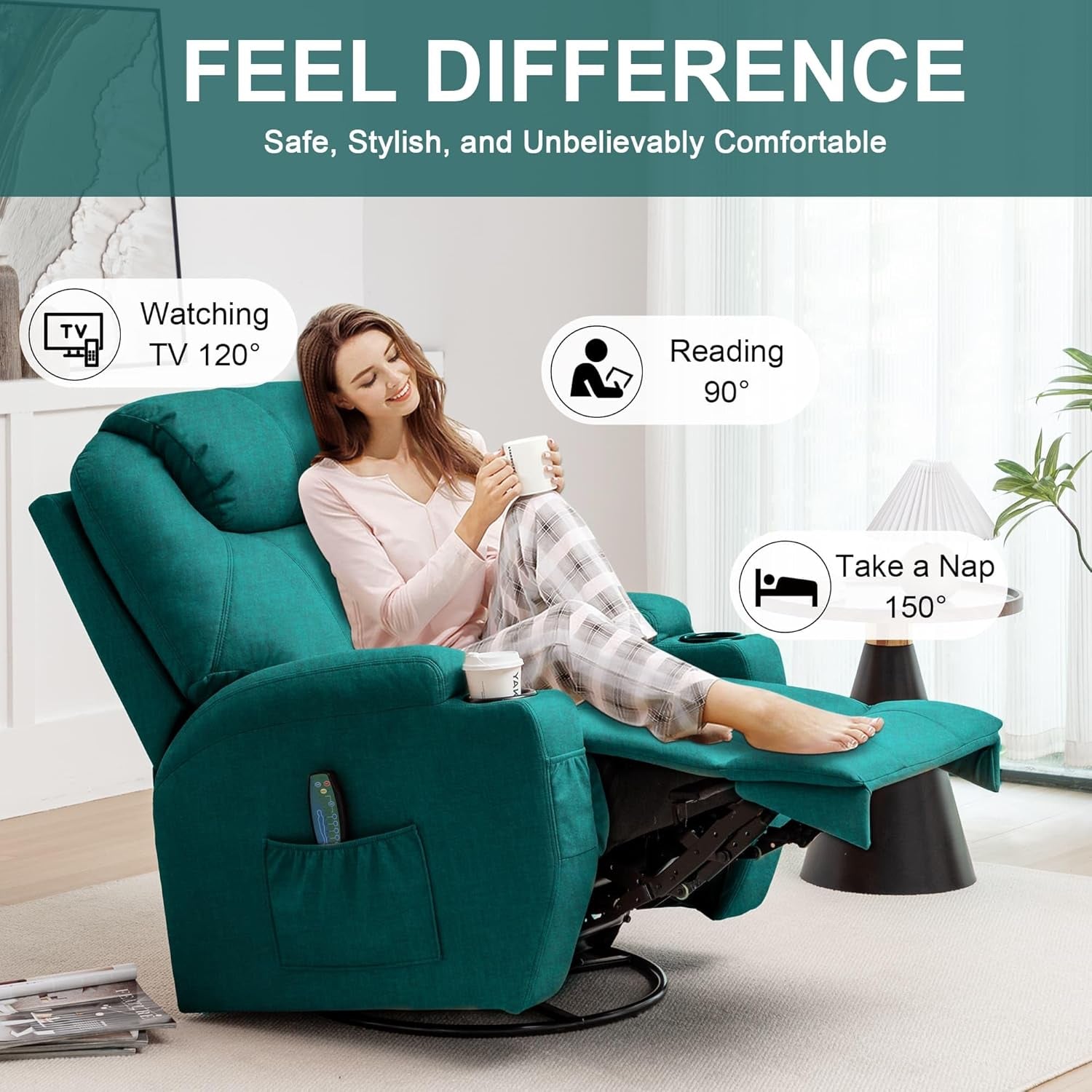 - Swivel Rocker Recliner: Enjoy a 360-degree swivel and gentle rocking motion that promotes relaxation, making it perfect for winding down after a long day.