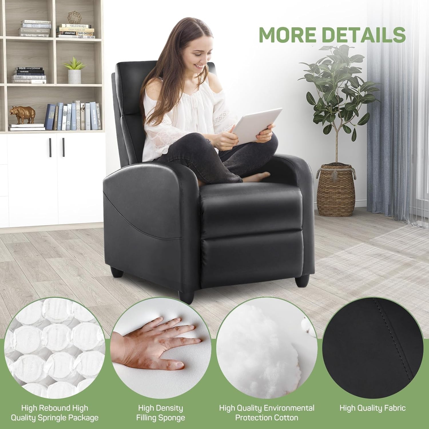 - Space-Efficient Design: Perfect for small living rooms or apartments, this sleek recliner fits seamlessly without taking up too much space.