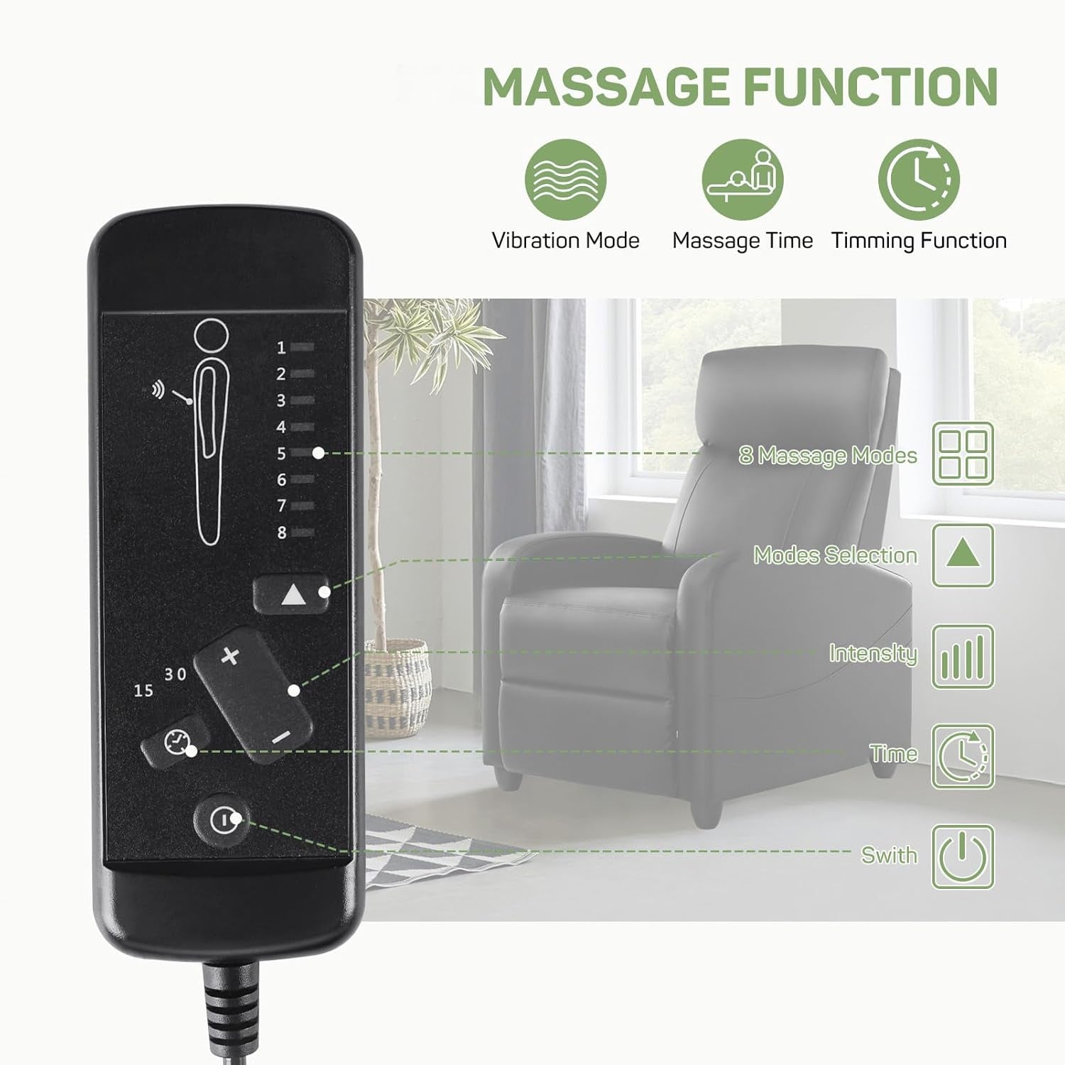 Recliner Chair with Massage and Lumbar Support, Small PU Leather Home