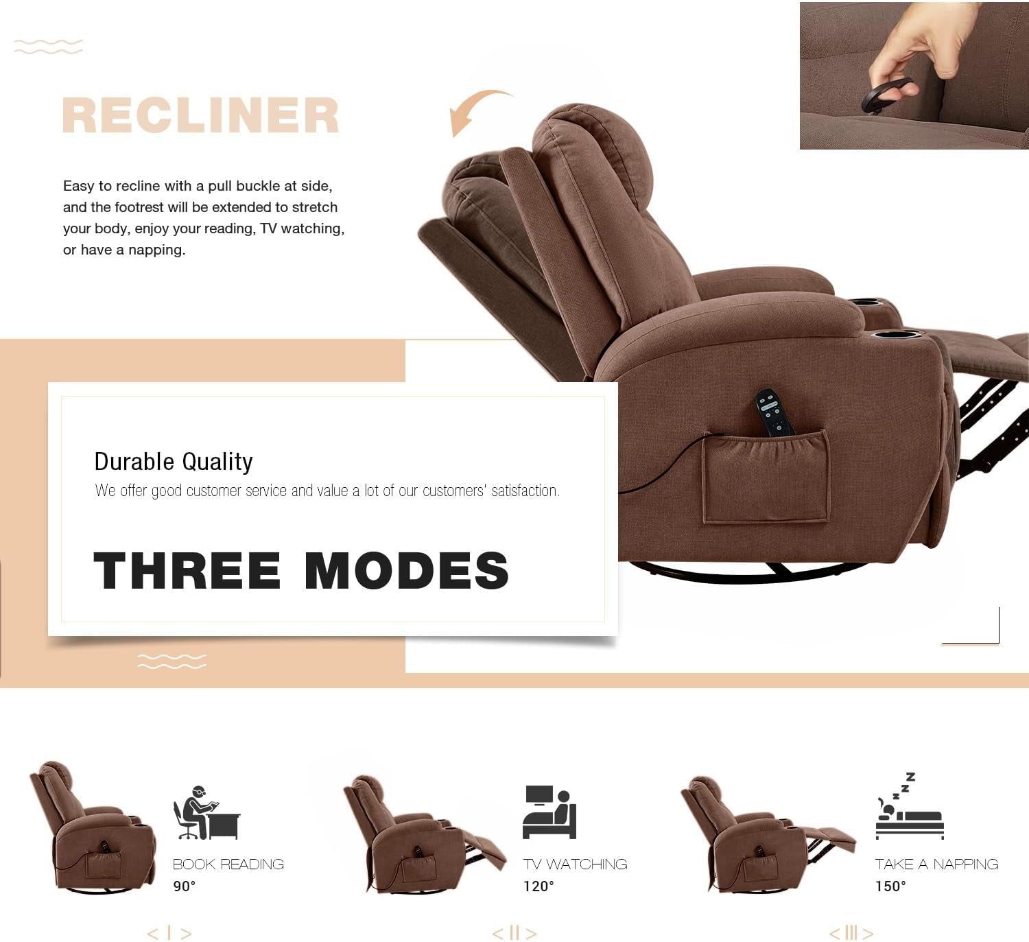 Rocking Chair Recliner Chair with Massage Swivel Ergonomic Lounge