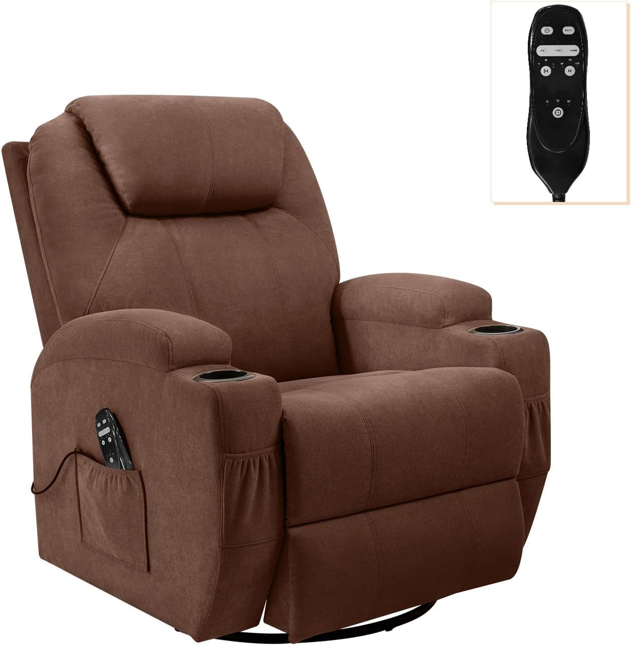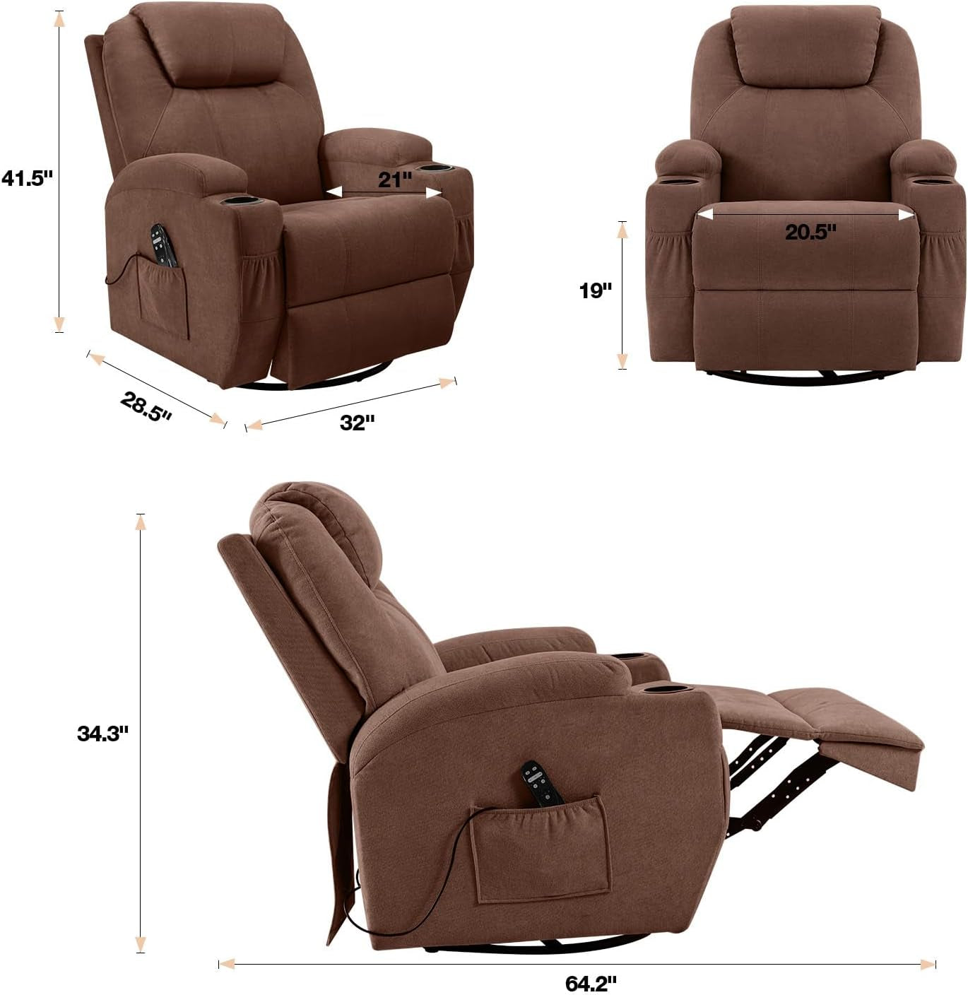Ergonomic Swivel Recliner Chair with Massage and Cup Holders